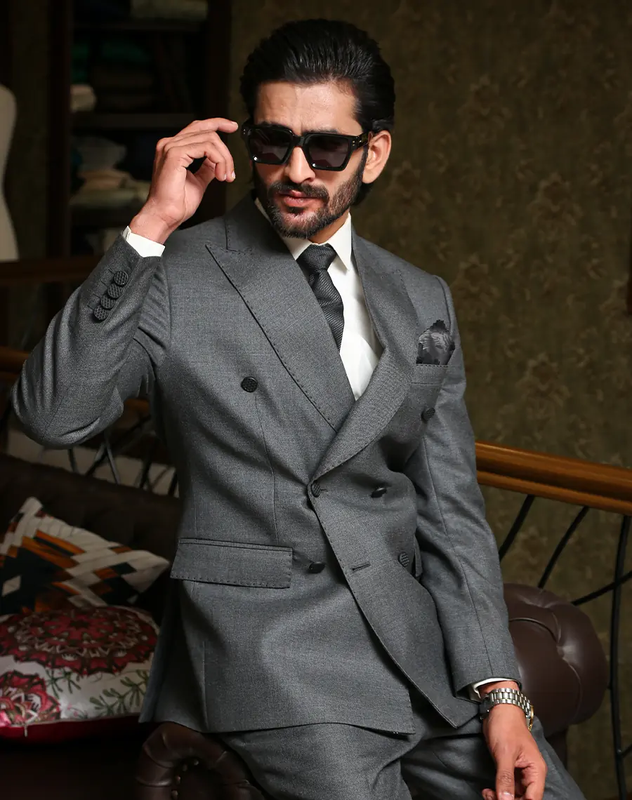 “Unleash your inner titan with our charcoal grey double-breasted suit, a sartorial behemoth that commands respect and admiration. The imposing silhouette, crafted with precision and finesse, exudes an aura of authority and sophistication that’s impossible to ignore.”
