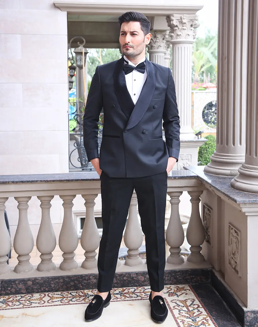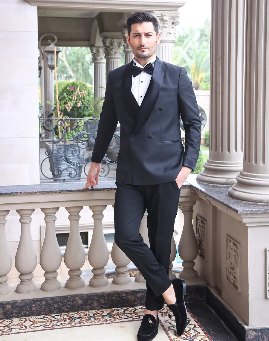 Description | Shine like a star on the red carpet with our sleek single-button black tuxedo. The minimalist design lets the wearer's confidence and charisma take center stage. | "This tuxedo exudes elegance and refinement. The black color provides a timeless backdrop for the embroidered details, which shine with every movement." | This suit is designed for the man who demands excellence and sophistication. The luxurious fabric drapes elegantly on the body, showcasing impeccable craftsmanship and attention to details. | The off-white color provides a unique twist on classic formal wear, making you stand out with confidence and style. | "Sleek black tuxedo with embellished work on all over, paired with a pleated shirt and a shawl lapel." | "Royal black tuxedo with embellished shawl lapel work paired with a pleated shirt." |